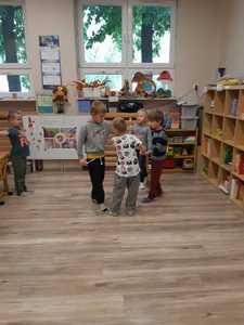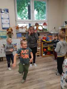 Zajęcia muzykoterapii w grupie S3. Na zajęciach tych wykorzystywane są piosenki o tematyce jesiennej, podczas których dzieci poznają elementy muzyki: melodykę, agogikę, rytmikę i dynamikę. Bawią się dźwiękiem, grają na instrumentach perkusyjnych i improwizują. Jest to czas na odpoczynek przy muzyce instrumentalnej i łagodzenie negatywnych emocji.