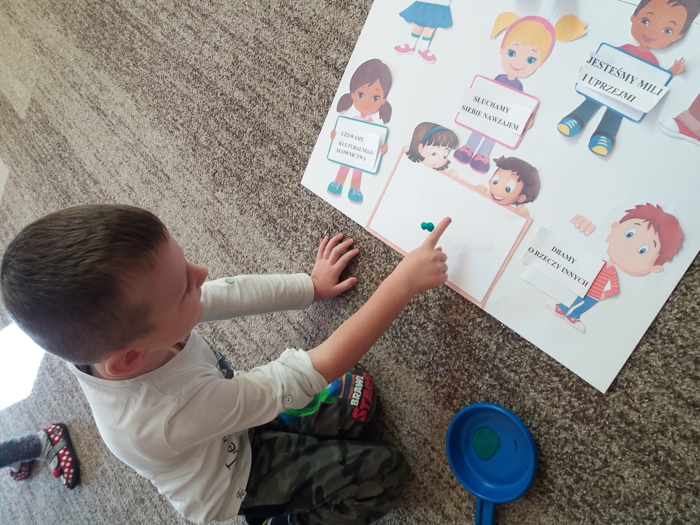 W RAMACH I MODUŁU PROJEKTU: -Rozmawialiśmy na temat kluczy dobrego zachowania - wiemy kiedy, jak i dlaczego mówimy: PROSZĘ, PRZEPRASZAM, DZIĘKUJĘ. -Stworzyliśmy ,,KODEKS DOBREGO ZACHOWANIA” i odbiliśmy swoje kciuki, tym samym zatwierdzając go. - Z okazji MIĘDZYNARODOWEGO DNIA OSÓB STARSZYCH -przygotowaliśmy kartki z życzeniami dla SENIORÓW Z HOSPICJUM KRÓLOWEJ APOSTOŁÓW W RADOMIU