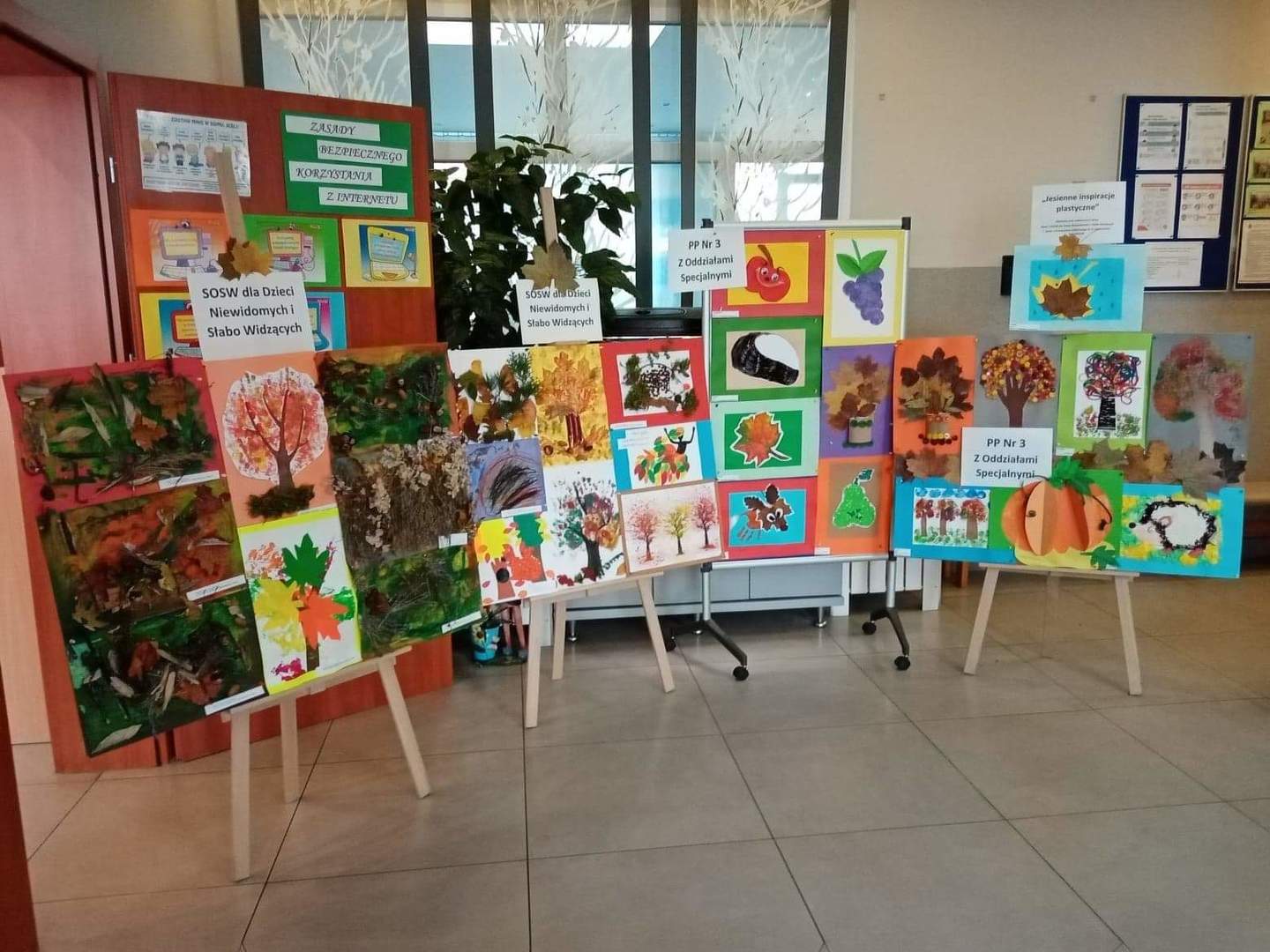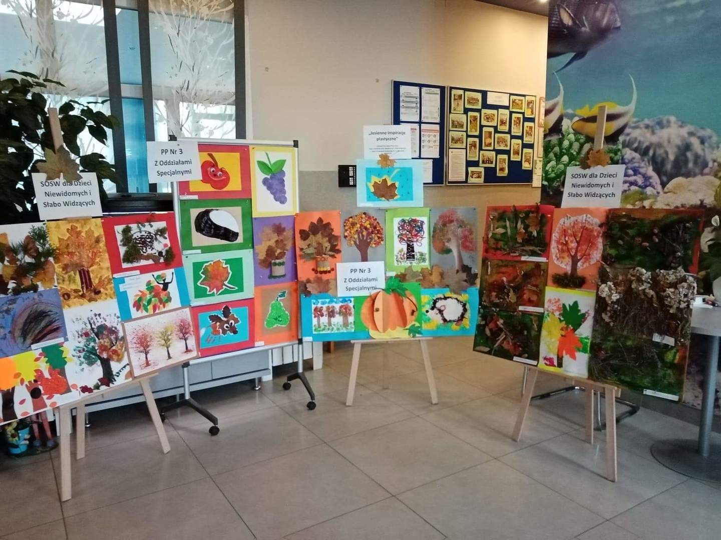Wystawa prac "Jesienne inspiracje plastyczne" ,,Jesienne inspiracje plastyczne'- wystawa prac wykonanych przez dzieci z SOSW dla Dzieci Niewidomych i Słabowidzących i Publicznego Przedszkola nr 3 w ramach działań integracyjnych.