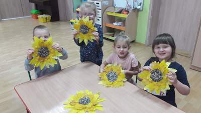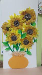 Kreatyna interpretacja obrazu Vincenta van Gogha "Słoneczniki" w wykonaniu Grupy 4 Ci w ramach realizacji Ogólnopolskiego Projektu Edukacyjnego "Kreatywny Przedszkolak- Kreatywne Dziecko".