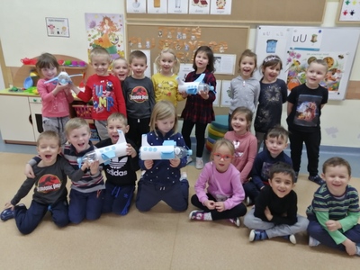 Dzieci z grupy 5b w związku z realizacją projektu ,,Idź Ty lepiej koziołeczku szukać swego Pacanowa” wykonały słownik obrazkowy wyrazów, które można znaleźć w książce o Koziołku Matołku, a już są mało lub wcale nie używane; przeprowadziły rozmowę z panią Karoliną na temat jak wyglądało jej spotkanie z książką o Koziołku. Ponadto pani Karolina opowiedziała i pokazała swoje zdjęcia z pobytu w Europejskim Centrum Bajek oraz przeczytała jedną z przygód Koziołka Matołka. Następnie dzieci wykonały pod kierunkiem pani Karoliny samolot dla Koziołka Matołka.
