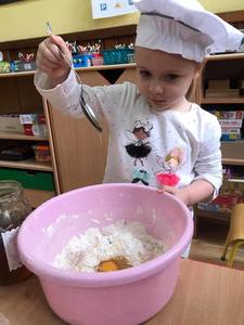 "W święta każde dziecko wie, jak pierniczki robi się. I ja też się na tym znam, palce lizać mówię Wam!" Przedszkolaki z 3C też się na tym doskonale znają: odmierzają, zagniatają, wałkują, wycinają i pięknie pierniczki dekorują.