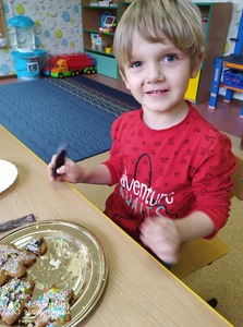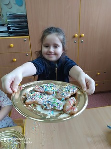 Święta tuż, tuż, choinki już ubrane, kolędy przypomniane, czas na zapachy, kolory i świąteczną radość!!! Wszystkie dzieci wiedzą, że nie ma zapachu świąt bez aromatu pierników, dlatego przedszkolaki z grup S1 i S2 zakasały rękawy i wspólnie przygotowały ciasto, upiekły pierniczki i pięknie je udekorowały🎄🎄