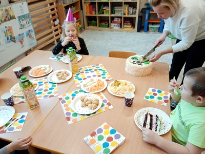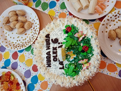 We wtorek Olek świętował swoje szóste urodziny. Koledzy z grupy przygotowali dla solenizanta piękną laurkę, obrazki wykonane samodzielnie i z własnej inicjatywy przez Maję, Olka i Emila. Oczywiście wspólnie odśpiewaliśmy „STO LAT” i zjedliśmy pyszny tory. Dla Olusia od nas wszystkich życzenia zdrówka, uśmiechów, miłych kolegów do zabawy i spełnienia marzeń. 100 lat Olku!!!!
