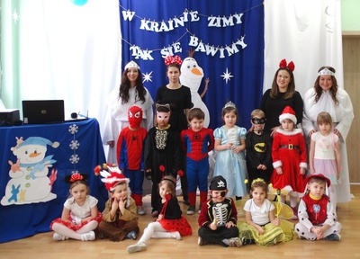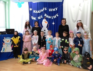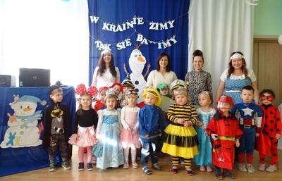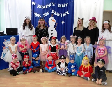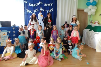 Karnawał to czas balów i tanecznych szaleństw, którym towarzyszy muzyka i zabawa. Dzieci z naszego przedszkola również miały okazję wspólnie zintegrować się na balu, gdzie do zabawy w Krainie Śniegu zaprosiła ich Pani Zima. Dzieci tego dnia miały okazję przebrać się za różne postacie z bajek i nie tylko. Na balu można było spotkać: wróżki, księżniczki, biedronki, rycerzy, policjantów, strażaków, Spider – mana i wiele innych postaci. Przedszkolaki wyśmienicie bawiły się w podczas balu przy dźwiękach zimowych hitów oraz brały udział w najróżniejszych konkursach. Zimowa Kraina i jej mieszkańcy na długą zagoszczą w pamięci całego przedszkola.