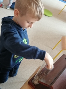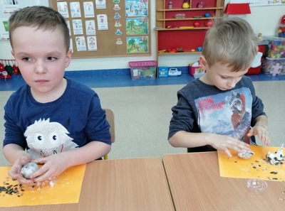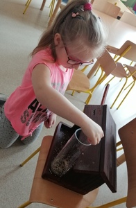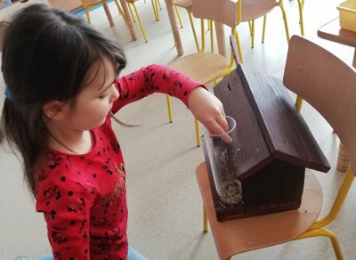 Grupa 6ci w ramach zajęć popołudniowych przygotowała dla ptaków przysmaki, które razem z ziarenkami umieściły w karmniku. Zajęcia te sprawiły dzieciom dużo radości oraz pomogły w kształtowaniu u dzieci poczucia odpowiedzialności, obowiązkowości oraz wrażliwość na los zwierząt.