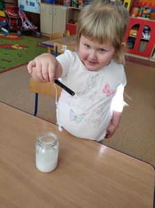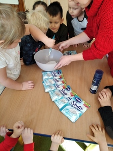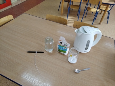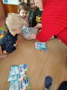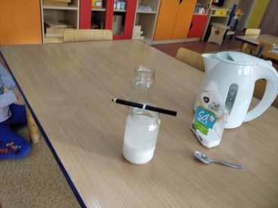 Maluszki z grupy 3A realizują projekt "Mali badacze". Celem projektu jest zainteresowanie i rozbudzenie u dzieci umiejętności naukowych takich jak: badanie i eksperymentowanie z różnymi materiałami, które występują w świecie. Poniżej prezentujemy dwa eksperymenty wykonane przez dzieci. Są to: kryształy z soli i sztuczny śnieg.