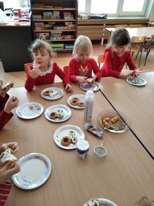 Walentynki, walentynki dla chłopczyka i dziewczynki.... Grupa 3a w piątek obchodziła Dzień Świętego Walentego. Maluszki w tym dniu miały do wykonania kilka zadań. Pierwszym z nich było odszukanie i połączenie par bajkowych bohaterów. Następnie maluszki układały puzzle przedstawiające bajkowe pary potem wykazały się znajomością kształtów, dopasowując je w odpowiednie miejsca na sercu. Na koniec dzieci zatańczyły taniec z serduszkowymi balonami i przygotowały przepyszne gofry w kształcie serca, które ze smakiem zjadły.To był dzień pełen kolorowych emocji, w którym dominował kolor czerwony.