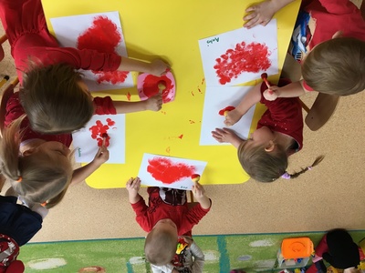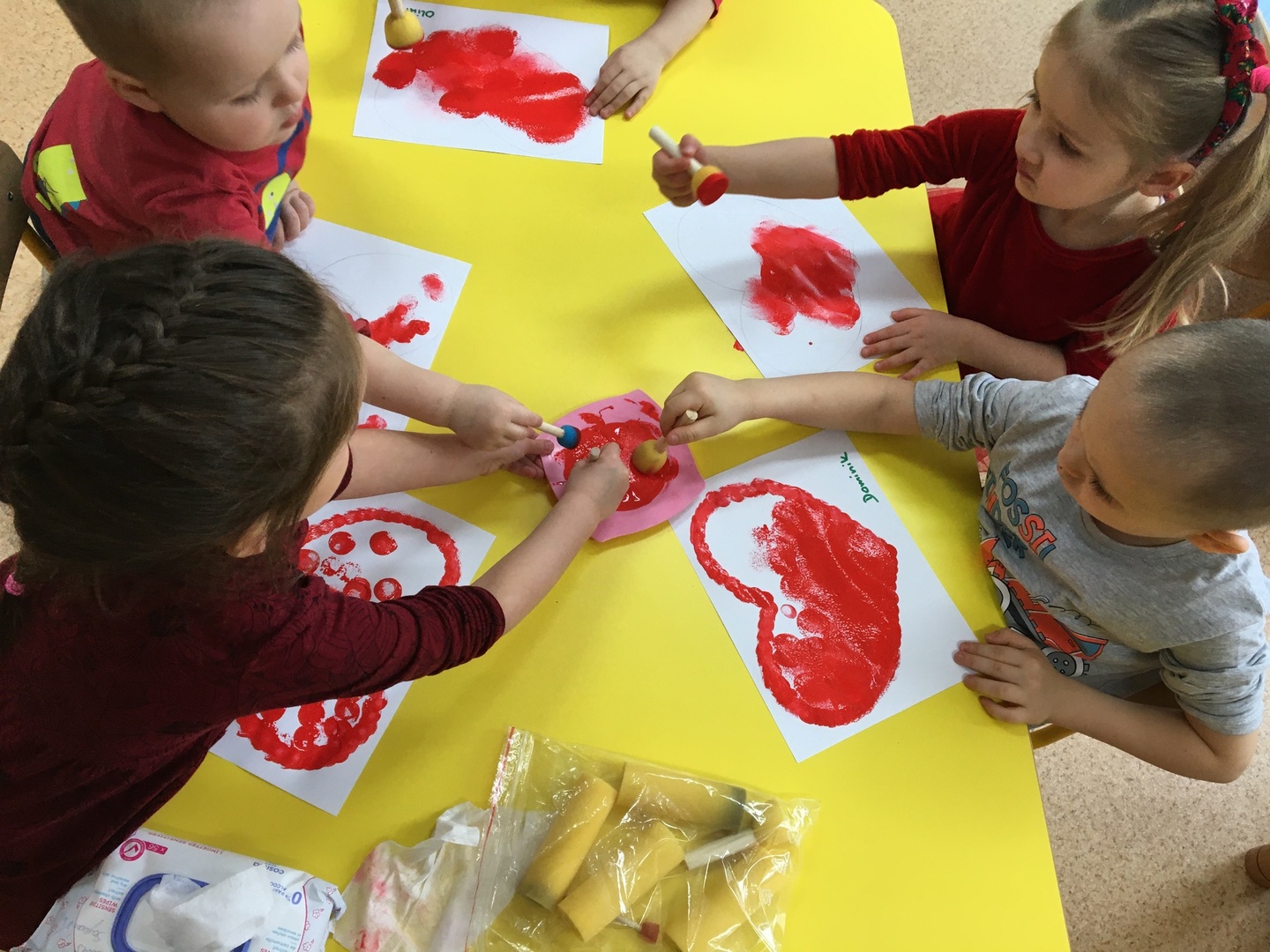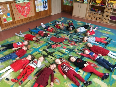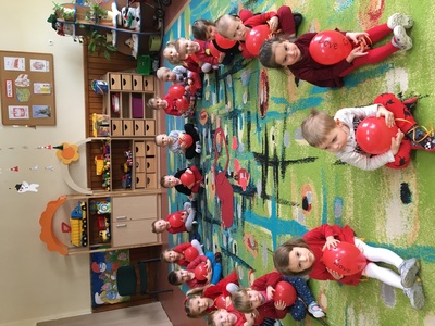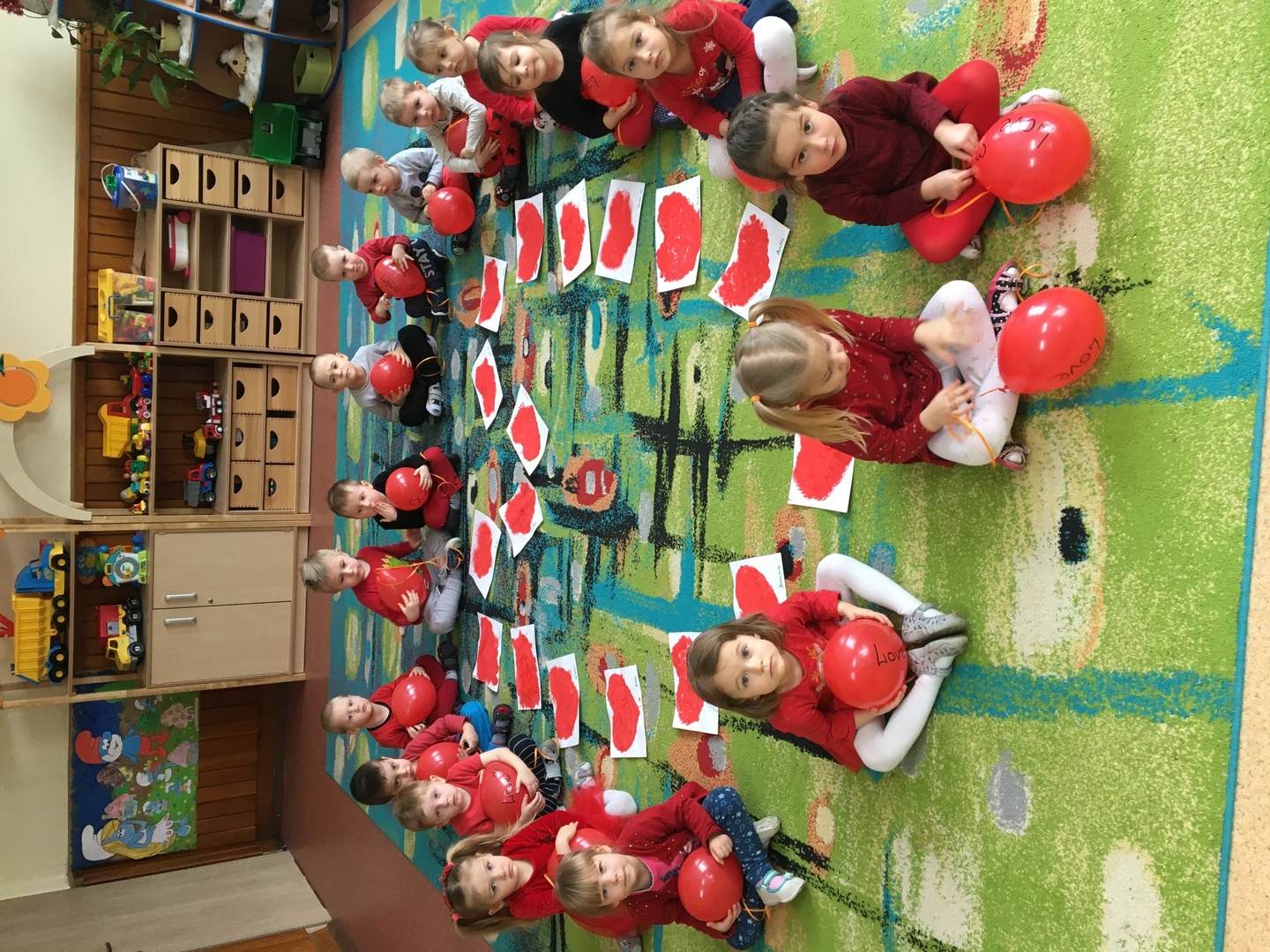 W dniu 15.02.2021 r w grupie 3B dzieci świętowały Dzień Zakochanych. Tego dnia maluszki przyszły do przedszkola ubrane na czerwono i dzięki temu był prawdziwym, czerwonym dniem miłości i przyjaźni. Z tej okazji udekorowaliśmy salę czerwonymi serduszkami a także zapoznaliśmy się z tradycją tego święta oraz patronem dnia zakochanych.. Podczas wielu zabaw dzieci okazywały swoje uczucia innym, nawiązywały kontakty interpersonalne w czasie wspólnych zabaw, czerpały radość ze wspólnej zabawy i pobytu w przedszkolu. Z wielkim zaangażowaniem wykonały pracę plastyczną Serce dla przyjaciela. Na koniec tego czerwonego dnia każde dziecko otrzymało czerwonego balonika od pani. Dzień Walentynkowy w grupie z pewnością można zaliczyć do udanego. Był to dzień miłych wrażeń.