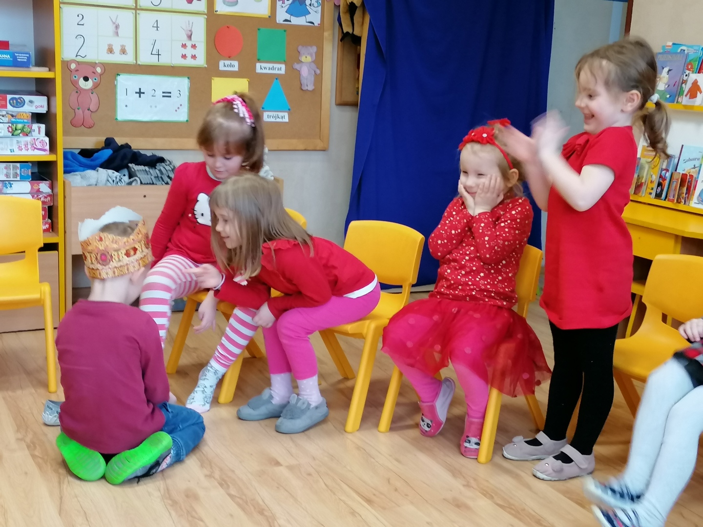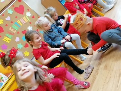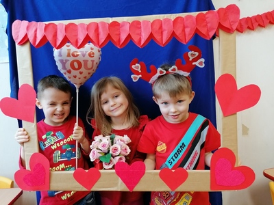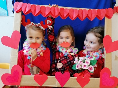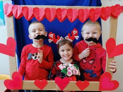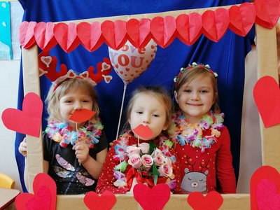 W dniu 15.02. w grupie 4B obchodziliśmy Walentynki. Przygotowania do tego dnia rozpoczęliśmy od akcji "Od przedszkolaka dla świetliczaka- od świetliczaka dla przedszkolaka", która polegała na wymianie kartek walentynkowych z dziećmi uczęszczającymi na świetlicę w PSP nr 34 w Radomiu. Nasze Przedszkolaki już kilka dni przed Walentynkami przygotowały piękne kartki, które zostały przekazane "świetliczakom". W naszej grupie obchodom Walentynek towarzyszyły gry i zabawy, rozmawialiśmy także o miłości i przyjaźni względem naszych bliskich oraz śpiewaliśmy piosenkę pt. "Małe serduszko". Dzień upłynął nam w niezwykle radosnej atmosferze, a jego uwieńczeniem było otrzymanie kartek walentynkowych przygotowanych wcześniej przez starszych kolegów oraz pamiątkowe zdjęcia w serduszkowej foto-ramce.
