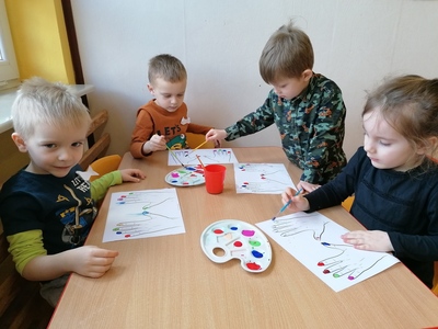 W poniedziałek świętowaliśmy w grupie 4B Dzień Kobiet. Rozmawialiśmy o tym, jak być małą damą i dżentelmenem. Nasi panowie mieli okazję zamienić się w stylistów mody, modelkami oczywiście były nasze dziewczynki- wszystkie zostały w naszej grupie ogłoszone "Miss Przedszkola" ;) Po radosnych tańcach i zabawach wzięliśmy udział w mini warsztatach... malowania paznokci. Wszyscy spisali się świetnie! Ponadto dziewczynki jako stylistki miały okazję wykonać makijaż (na kartce) oraz zaprojektować i ozdobić buty według własnego pomysłu. Był to dzień pełen radości i wdzięczności i upłynął nam w niezwykle miłej atmosferze! Wszystkim Paniom, małym i dużym, życzymy jak najwięcej dobra i radości!