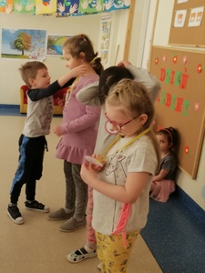 Dzień Kobiet w gr.6ci 08.03 chłopcy z grupy 6Ci rozpoczęli dzień od złożenia życzeń swoim koleżankom. Podczas wspólnych zabaw ruchowych i tanecznych oraz quizu wszyscy dobrze się bawili. Każdy dziewczynka otrzymała piękne laurki.