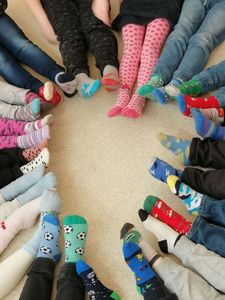 21.03.2021r jest obchodzony Światowy Dzień Zespołu Downa. Dobrze wiemy, że każdy z nas jest indywidualnością, ma własne pragnienia i upodobania. Nie ma osób identycznych – różnorodność jest rzeczą naturalną i każdy z nas ma prawo do realizowania swoich planów i marzeń. Dlatego też tego dnia zakładamy dwie różne skarpetki które są wyrazem tolerancji i jednocześnie symbolizują solidaryzowanie się z osobami z Zespołem Downa, które mimo różnic genotypowych są radosnymi i pełnymi życia osobami. Tym sposobem pokazujemy, że różni nas tak niewiele – jeden dodatkowy, niepasujący chromosom – tak jak nasza dodatkowa niepasująca skarpetka.