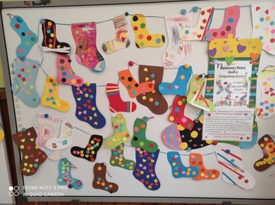21.03.2021r jest obchodzony Światowy Dzień Zespołu Downa. Dobrze wiemy, że każdy z nas jest indywidualnością, ma własne pragnienia i upodobania. Nie ma osób identycznych – różnorodność jest rzeczą naturalną i każdy z nas ma prawo do realizowania swoich planów i marzeń. Dlatego też tego dnia zakładamy dwie różne skarpetki które są wyrazem tolerancji i jednocześnie symbolizują solidaryzowanie się z osobami z Zespołem Downa, które mimo różnic genotypowych są radosnymi i pełnymi życia osobami. Tym sposobem pokazujemy, że różni nas tak niewiele – jeden dodatkowy, niepasujący chromosom – tak jak nasza dodatkowa niepasująca skarpetka.