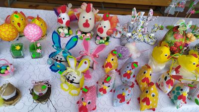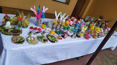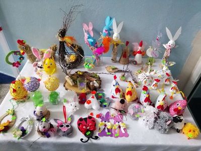 25.03.2021r. „Pisanki, baranki…” W ubiegłym roku szkolnym 2019/20, w miesiącu lutym, na terenie przedszkola został zorganizowany cykl warsztatów plastycznych dla nauczycieli pt. „Wielkanocne ozdoby”. Wszyscy chętni wykonali piękne i niepowtarzalne prace, które były wykonane różnymi technikami plastycznymi. Niestety sytuacja epidemiologiczna, która zaistniała w zeszłym roku, w marcu nie pozwoliła na to aby wszyscy zainteresowani mogli je zobaczyć. Dlatego dn. 25.03.2021r. na otwartej przestrzeni, na terenie placówki oraz PSP nr 27 zostało wystawione stoisko, na którym można było nareszcie nabyć piękne wyroby rękodzielnicze. Były to między innymi baranki, kurczaczki, pisanki, zajączki i wiele innych prac jakże nasyconych pięknymi kolorami, które wprowadziły wszystkich w radosny nastrój jaki niesie ze sobą nadchodząca wiosna i Święta Wielkanocne. Ozdoby świąteczne cieszyły się wielkim powodzeniem wśród wszystkich odwiedzających nasze przedszkole. Zebrana kwota: 820 zł, będzie przeznaczona na pomoce dydaktyczne we wszystkich grupach wiekowych. Dziękujemy bardzo i do zobaczenia w przyszłym…lepszym roku!