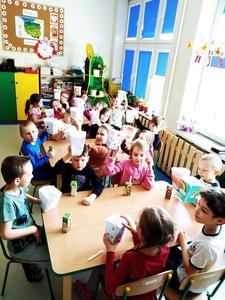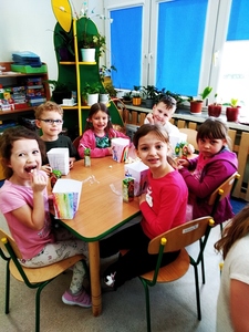 23.04. 2021 starszaki z grupy 6a obejrzały ekranizacje ulubionych bajek, które wyświetlone były na tablicy interaktywnej. Seans zorganizowany był w stylu kinowym, dzieci czuły się jakby naprawdę były na sali kinowej, a po zakończonym seansie dzieci konsumowały popcorn, popijając go soczkiem jabłkowym.
