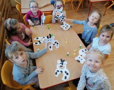 W tamtym tygodniu w grupie 4B oraz 4Di realizowaliśmy projekt edukacyjny pt.„Mleko”. Dzieci dowiedziały się skąd bierze się mleko, poznały różne jego rodzaje i przetwory mleczne. Same zrobiły koktajl mleczno - owocowy. W czasie trwania projektu robiliśmy różne prace plastyczne, uczestniczyliśmy w zabawach ruchowych i muzycznych związanych z daną tematyką.