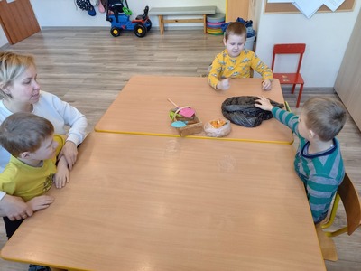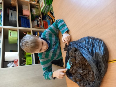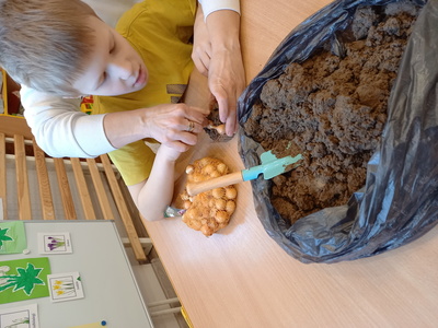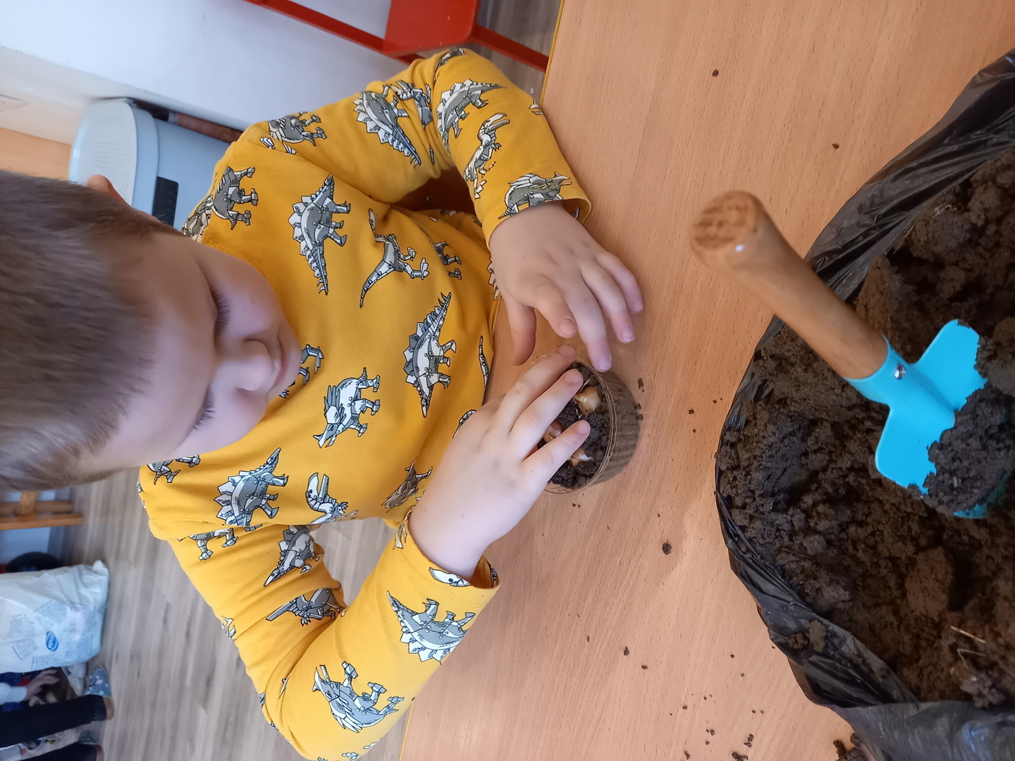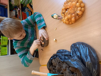 Dzieci z grupy S3 sadziły cebulę. Przedszkolaki zapoznały się z jej wyglądem: budową, kolorem, kształtem, fakturą, zapachem oraz etapami jej sadzenia. Odpowiednio przygotowane dzieci, w niezbędne przedmioty zabrały się za pracę. Każde dziecko posadziło cebulkę. Codziennie ją podlewali i prowadzili obserwacje wzrostu szczypiorku.