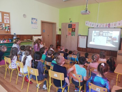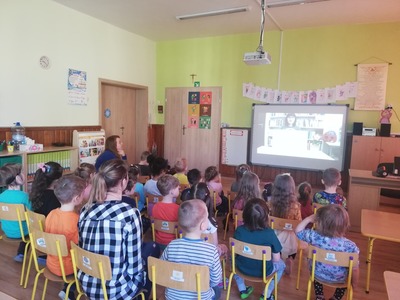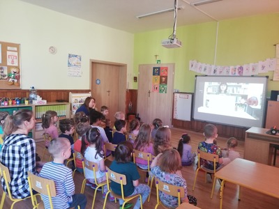W dniach 6 i 7 maja z okazji Dnia Bibliotekarza przedszkolaki z grup 3 i 4 latków brały udział w spotkaniu on-line z Panią bibliotekarz – Iloną Michalską-Masiarz. Celem spotkania było: zapoznanie z zawodem bibliotekarza, rozbudzenie zainteresowania książkami, wyjaśnienie pojęć: książka, biblioteka. Pani Ilona przygotowała również dla dzieci niespodziankę... był to teatrzyk Kamishibai, historia pt. „Mój przyjaciel Kemushi”. Dzieci były bardzo zadowolone ze spotkania oraz z zaproszenia, które otrzymały, by to teraz one odwiedziły Panią Ilonę w bibliotece. Serdecznie dziękujemy Filii Nr 2 MBP w Radomiu za zorganizowanie tego interesującego wydarzenia!"