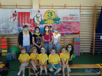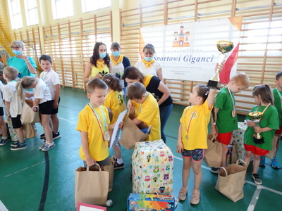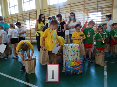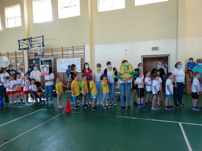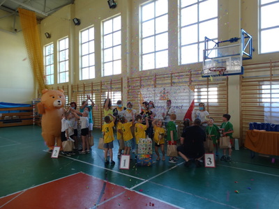 Paraolimpiada „Sportowi giganci” Dziś świętujemy, a okazja nie byle jaka. Dzieci z oddziałów specjalnych po raz drugi brały udział w paraolimpiadzie organizowanej przez PP nr 19 w Radomiu. Ten dzień okazałaś dla naszych WIELKICH PRZEDSZKOLAKÓW wspaniałym dniem, gdyż zostali zwycięzcami, wielkimi GIGANTAMI SPORTOWYMI a co za tym idzie pierwsze miejsce na podium ale przede wszystkim była to dla nich wspaniała zabawa z innymi uczestnikami, niesamowitymi uczestnikami! Nasza drużyna, która była mała wzrostem to była wielka duchem, duchem sportu, zaangażowania i radości! Nie mogło oczywiście zabraknąć nowych przyjaciół a jednym z nich był miś i milusiński dinozaur. No cóż uśmiech towarzyszył dzieciom cały czas a dlaczego? … prezenty, zabawki…a wiemy, że dzieci to lubią. Jak również pyszna pizza dla drużyny. Mniam, mniam…. Jeszcze raz gratulujemy i dziękujemy, że tak pięknie reprezentowali nasze przedszkole! Do zobaczenia za rok!