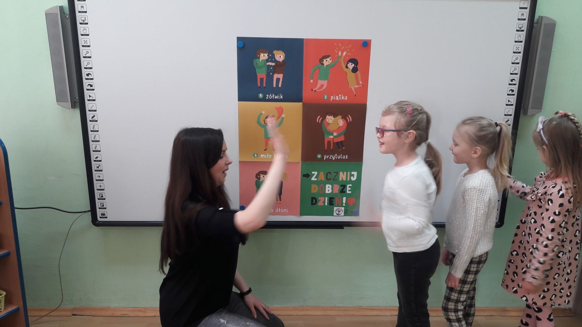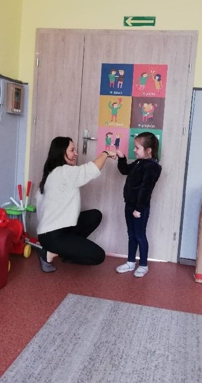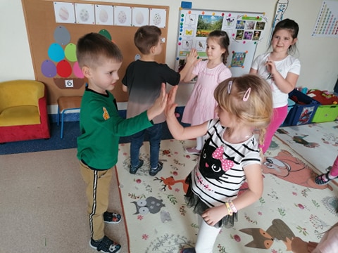 W KWIETNIU I MAJU NASZE PRZEDSZKOLE WZIĘŁO UDZIAŁ W OGÓLNOPOLSKIEJ KAMPANII SPOŁECZNEJ POD PATRONATEM BIURA RZECZNIKA PRAW OBYWATELSKICH ,, ZACZNIJ DOBRZE DZIEŃ!”, której celem było uświadomienie dzieciom, że poprzez codzienne witanie się, okazujemy życzliwość i szacunek drugiej osobie. W ten sposób redukujemy też poziom stresu i agresji, mamy wpływ na dobre samopoczucie drugiej osoby, dzięki czemu czuje się ona dostrzeżona i akceptowana. W trakcie trwania kampanii przeprowadzone zostały zajęcia dotyczące prawidłowego budowania relacji. Ponadto przez cały czas trwania kampanii dzieci witały się w wybrany przez siebie sposób. Akcji towarzyszyły plakaty przygotowane przez Fundację, które znajdowały się na drzwiach każdej grupy. Mamy nadzieję, że przedszkolaki zapamiętają, że warto miło zacząć każdy dzień.