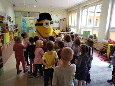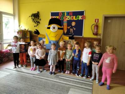 20 września jak co roku, przedszkolaki świętowały Dzień Przedszkolaka. Dzieci z obydwu grup: 4a i 4b brały udział w zawodach sportowych, złożonych z kilku konkurencji. Przechodziły przez linę, turlały piłkę między pachołkami, musiały przenieść jajeczko na łyżce tak by nie spadło, pokonały sensoryczną ścieżkę na bosaka. Niespodziankę sprawił dzieciom Minionek, który przyszedł w odwiedziny, by wspólnie świętować ten wyjątkowy dzień. Na koniec zawodów, dzieci przeszły przez tunel i skosztowały słodkiego poczęstunku. Wśród przedszkolaków panowała radosna i sympatyczna atmosfera. Wszystkiego najlepszego przedszkolaki i samych miłych chwil !