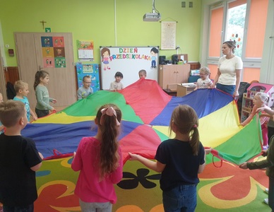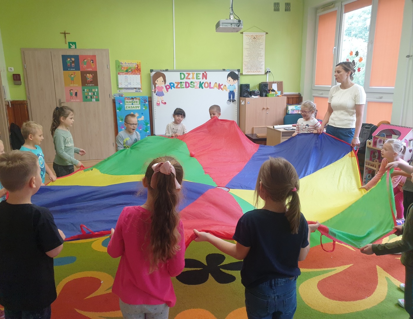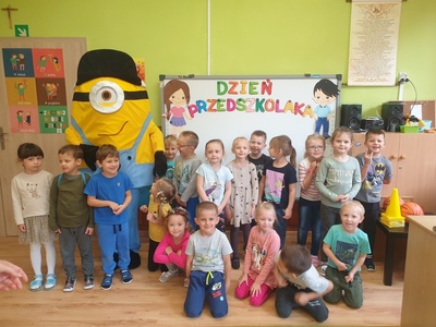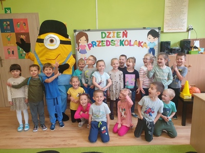 "Jestem sobie Przedszkolaczek... - już średniaczek" 🙂 20 września obchodziliśmy w naszym przedszkolu Dzień Przedszkolaka 🙂 Grupa 5ci świętowała ten dzień biorąc udział w mini zawodach sportowych, zabawach integracyjnych, zabawie z chustą animacyjną oraz twórczej zabawie plastycznej " My klepiemy do rytmu farbami "🙂 Dodatkową atrakcją były odwiedziny uroczego gościa - Minionka🙂 To był wspaniały, aktywny i radosny dzień! Wszystkiego najlepszego dla naszych Przedszkolaków❤