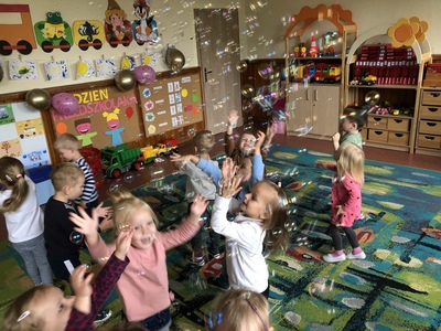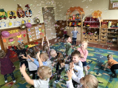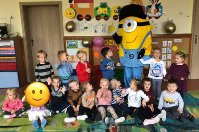 W poniedziałek w naszym przedszkolu obchodziliśmy Dzień Przedszkolaka. Z tej okazji odwiedził nas specjalny gość - ulubieniec wszystkich dzieci Minionek. Były wspólne tańce, zabawy zręcznościowe, zabawy z chustą animacyjną, a nawet bańki mydlane. Na koniec każde dziecko obiecało być dzielnym i radosnym przedszkolakiem.