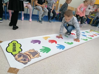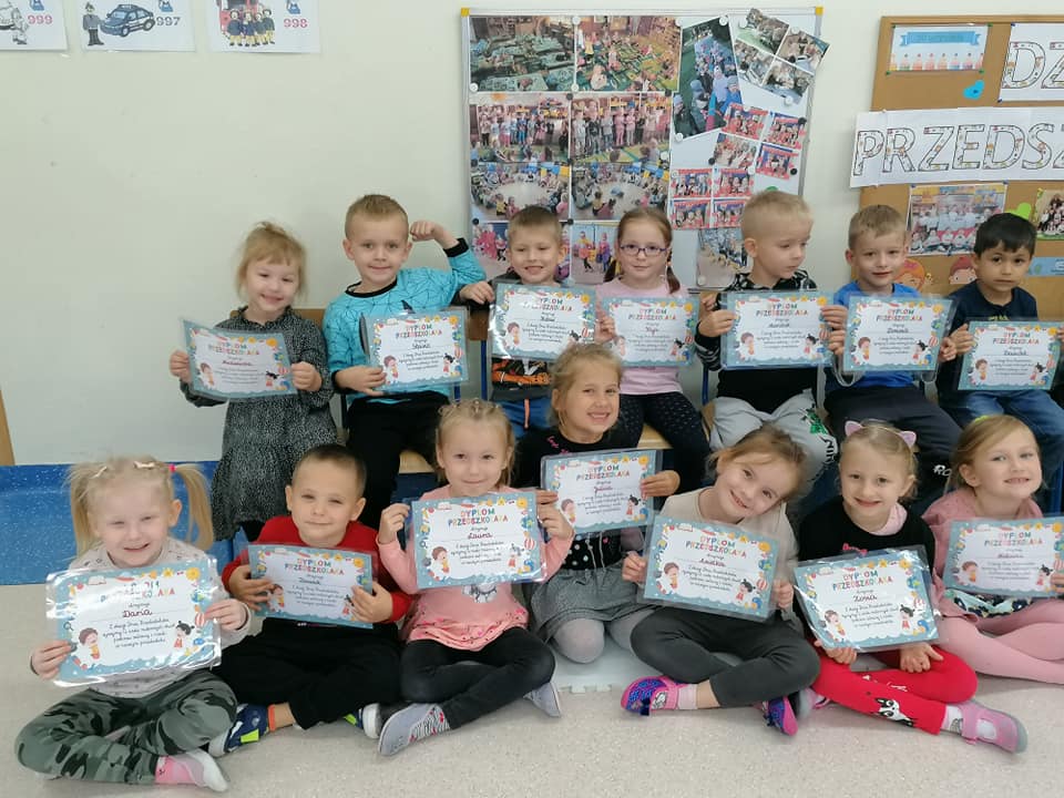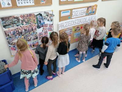 Radość, wspomnienia, taniec i zabawa- takie hasła najtrafniej opisują obchody Dnia Przedszkolaka w grupie 5B. Już od samego rana mieliśmy okazję poczuć się jak w galerii sztuki- a to za sprawą naszych zdjęć, które znalazły się na tablicy w sali- niczym na wystawie. Oglądanie siebie jako trzy- i czterolatków sprawiło nam wiele radości oraz przywołało miłe (często także zabawne ;) ) wspomnienia. Następnie wszyscy wzięliśmy udział w Quizie wiedzy o naszym Przedszkolu, grach i zabawach zręcznościowych, tańczyliśmy także na gazetach oraz śpiewaliśmy Hymn Przedszkolaka. Przez cały dzień towarzyszył nam okrzyk: "Chociaż jestem jeszcze mały... To przedszkolak ze mnie WSPANIAŁY!!!"
