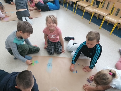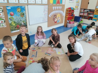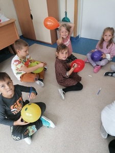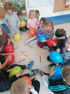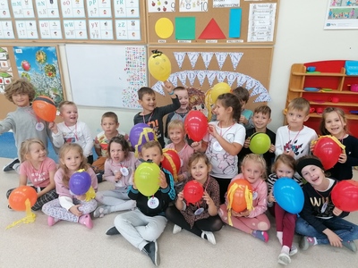 W poniedziałek - 20 września obchodziliśmy w naszej grupie Ogólnopolski Dzień Przedszkolaka bawiąc się przy dźwiękach naszych ulubionych piosenek, rysując na dużych arkuszach papieru ulubione przedszkolne zabawy oraz ozdabiając balony kolorowymi flamastrami i bibułą tworząc "wesołe buźki". Na zakończenie zabawy otrzymaliśmy pamiątkowe medale.