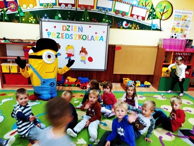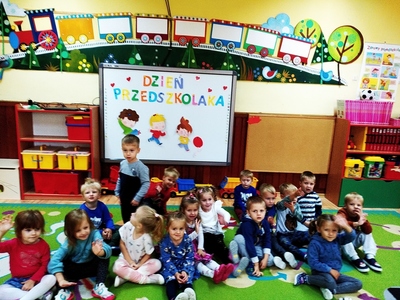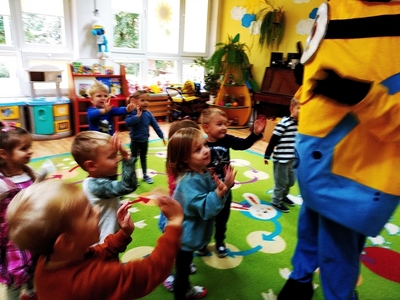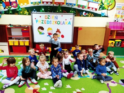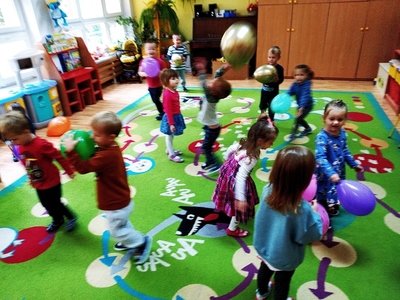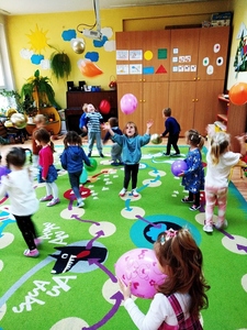 Grupa 3C, to wesołe i uśmiechnięte PRZEDSZKOLAKI. 20 września był dla naszych trzylatków pierwszą uroczystością. Dzieci wspólnie z Paniami świętowanie rozpoczęły od nadmuchiwania kolorowych balonów, które wykorzystane zostały do wspaniałej zabawy. Przedszkolaki uczestniczyły w zabawach muzyczno-ruchowych z wykorzystaniem chusty animacyjnej, zawodach z piłkami i balonami. Po zakończonej zabawie każdemu przedszkolakowi wręczono wspaniały medal.