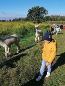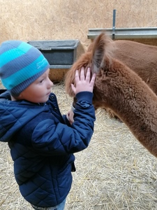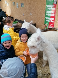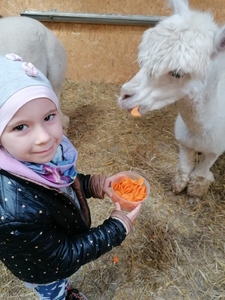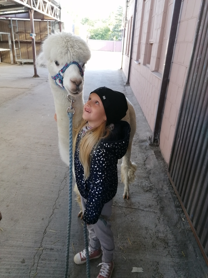 Dnia 22.09.2021 (środa) dzieci z gr.6A pojechały na Ranczo Rajec, gdzie spotkały się z przeuroczymi alpakami. Na początku spotkania pani właścicielka Rancza przedstawiła nam alpaki po imieniu, opowiedziała o ich życiu, zwyczajach a następnie mogliśmy nakarmić je przygotowanymi marchewkami, głaskać, przytulać się. Gdy alpaki się najadły wyprowadziliśmy je na spacer. Po powrocie ze spaceru zwierzęta sobie odpoczywały a my zjedliśmy pyszne kiełbaski z ogniska. Na zakończenie naszej wycieczki bawiliśmy się na placu zabaw zerkając na przeurocze alpaki. To była super wycieczka.