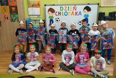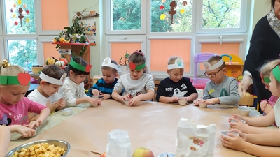 30 września w grupie 5Ci obchodziliśmy Dzień Chłopaka. Cały tydzień również rozmawialiśmy o smakach warzyw i owoców. Dlatego postanowiliśmy, że bardzo przyjemną kontynuacją tych zajęć będzie przygotowanie pysznej szarlotki z jesiennych jabłuszek właśnie z okazji tego dnia. Pracy było dużo ale ciasto wyszło wspaniale! Pyszna, tradycyjna szarlotka, jaką możemy spotkać u wielu mam lub babć. Były również życzenia od dziewczynek, prezenty i wspólna zabawa. Mamy nadzieję, że sprawiłyśmy radość naszym chłopcom i z przyjemnością będziemy wspominać ten dzień.
