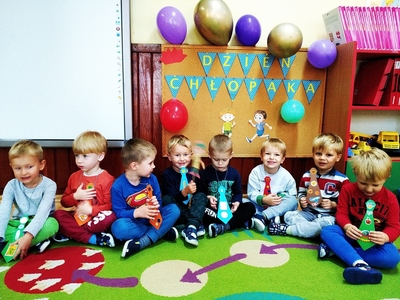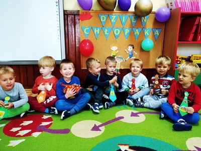 W dniu Święta Chłopców panie razem z dziewczynkami z grupy 3C, wręczyły chłopcom upominki i przygotowały niespodzianki. Wśród tych niespodzianek były m.in. dyskoteka, życzenia, uściski oraz małe, słodkie co nieco. Życzymy naszym chłopcom dużo uśmiechu, radości, wspaniałych kolegów i koleżanek.