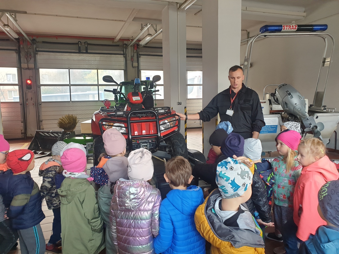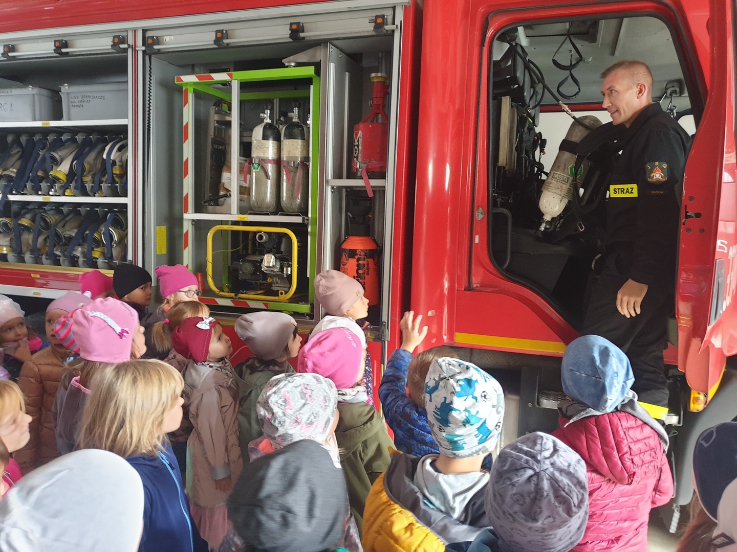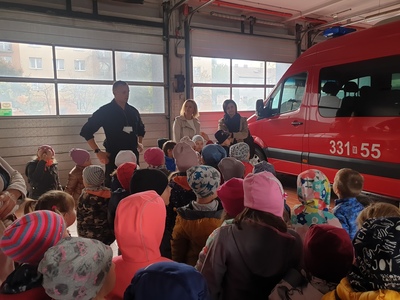 W ramach ogólnopolskiej akcji edukacyjnej " Bezpieczny Dom " w dniu 06.10.2021 grupa 5ci i 5a wybrały się do Komendy Miejskiej Straży Pożarnej w Radomiu. Podczas spotkania dzieci dowiedziały się od Pana strażaka o bezpiecznych zachowaniach w sytuacjach zagrożenia, które mogą przydarzyć się każdemu w codziennym życiu. Ponadto dzieci dowiedziały się jak zachować się podczas pożaru i wzięły udział w próbnej ewakuacji, do której strażacy użyli teatralnego dymu.Następnie każda z grup z bliska oglądała wozy strażackie,quady strażackie,jak i motorówkę do wypompowywania wody. Podczas wizyty byliśmy też świadkami prawdziwej akcji ratowniczej - strażacy zjeżdżający z rury, szybkie przebranie w stroje oraz głośna syrena w pełni ukazała nam jak wygląda zawód strażaka. Ten dzień na długo zapadnie w pamięci dzieciaków, a my mamy nadzieję, że numer NA RATUNEK -112 zapamiętał każdy przedszkolak !