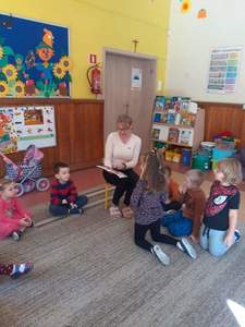 29 września to Ogólnopolski Dzień Głośnego Czytania. Dzieci z grupy 4a z dużym zainteresowaniem wysłuchały bajki o Czerwonym Kapturku. Oglądały ilustracje w książce i odpowiadały na pytania. Natomiast dzieci z grupy 5ci wysłuchały bajki „Calineczka”. Każda bajka kształci i uczy prawidłowych zachowań, dlatego warto czytać dzieciom. Co daje głośne czytanie: • rozbudowuje słownictwo dziecka; • rozwija wyobraźnię dziecka i kształci umiejętności rozumienia i analizowania tekstu; • buduje mocną więź między rodzicem, a dzieckiem; • zapewnia pozytywne emocje związane z czytaniem i książkami • rozwija empatię i pomaga maluchom w rozróżnianiu, rozumieniu i wyrażaniu swoich emocji; • buduje ogólne zrozumienie świata i postaw wobec konkretnych problemów; • niesie ze sobą lekcje życia, kształci moralny barometr dziecka, postawy i wartości; • buduje poczucie wartości i pomaga w zdarzeniach z trudnymi sytuacjami.