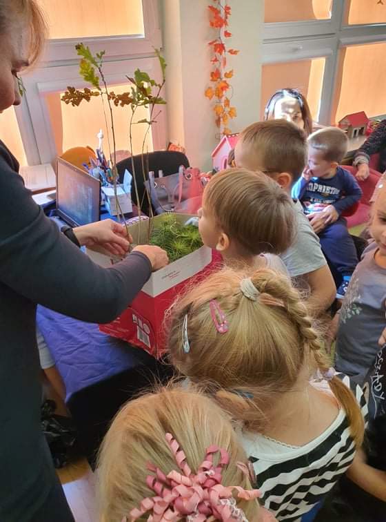 W czwartek odbyły się pierwsze zajęcia dla naszych przedszkolaków w ramach innowacji pedagogicznej „Przyjaciele planety”. Dzieci poznały różne gatunki drzew, dowiedziały się co nam daje las, jakie znaczenie ma dla środowiska. Podczas spotkania towarzyszył dzieciom Ekuś-ekologiczny ludzik. Dziękujemy Dyrekcji Lasów Państwowych w Radomiu za sadzonki otrzymane w ramach Ogólnopolskiej akcji #sadziMY” las z prezydentem RP. Przedszkolaki z grup specjalnych i integracyjnych posadziły dęby i sosny w naszym przedszkolnym ogródku. Teraz będziemy mogli podglądać jak rosną nasze piękne drzewka. Pamiętajmy! Drzewa wokół nas to czyste powietrze i więcej tlenu.