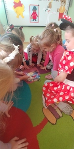 W piątek 5 listopada dzieci z grupy 4B obchodziły jedno z najsympatyczniejszych świąt- Dzień Postaci z Bajek. W tym dniu dzieci rozwiązywały zagadki słowno- obrazkowe,rozpoznawały bajkowe postaci i tytuły bajek po rekwizytach. Układały "bajkowe" puzzle, naśladowały również sposób poruszania się bajkowych postaci.Na zakończenie przedszkolaki wzięły udział w zabawie zręcznościowej polegającej na oddzielaniu grochu od fasoli, która wzbudziła duże zainteresowanie wśród dzieci. Ten dzień sprawił wiele radości. Dzieci przekonały się ,że dzięki bajkom można przenieś się w wyobraźni w inny świat.