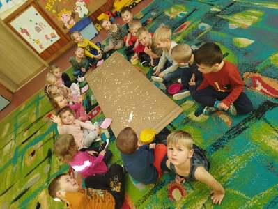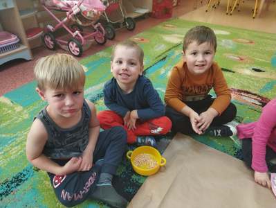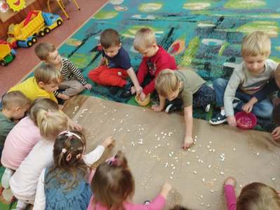 W piątek 5 listopada dzieci z grupy 3 B obchodziły ,,Dzień Postaci z Bajek". Na początku każde dziecko powiedziało jaką bajkę lubi najbardziej i którego bohatera. Następnym punktem zajęć było wysłuchanie bajki o Jasiu i Małgosi i ułożenie historyjki obrazkowej oraz rozwiązywanie zagadek tekstowych. Najwięcej radości sprawiło dzieciom zadanie polegające na oddzielaniu ziaren grochu od fasoli. Podczas tego zadania dzieci pracowały w wielkim skupieniu. Na koniec dzieci wybrały się na bal, gdzie przy ulubionych piosenkach tańczyły w parach.