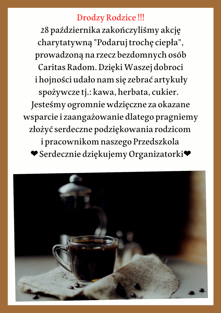 Podziękowania za udział w akcji "Podaruj trochę ciepła"