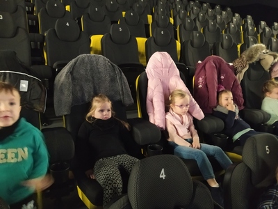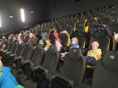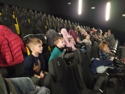 Wyjście do kina grup: 4Ci i 5Ci 15.11 dzieci z grup 4CI oraz 5CI wzięły udział w wycieczce do kina. Wspólnie odbyły warsztaty na temat znanych psów z bajek i filmów dla dzieci. Podczas pobytu wspólnie oglądały film pt. ,,Psi Patrol ".