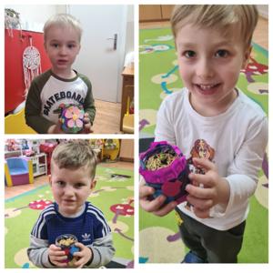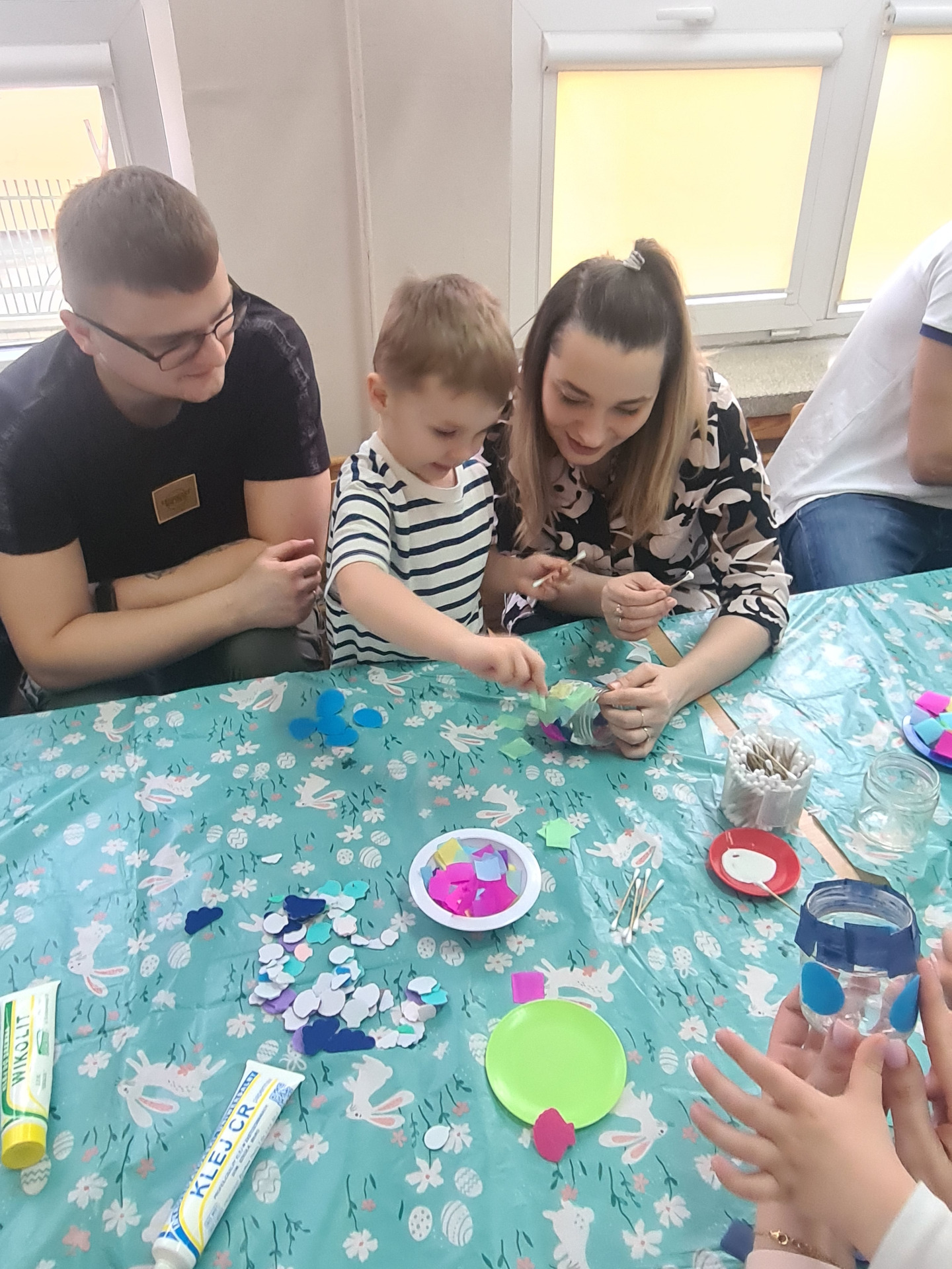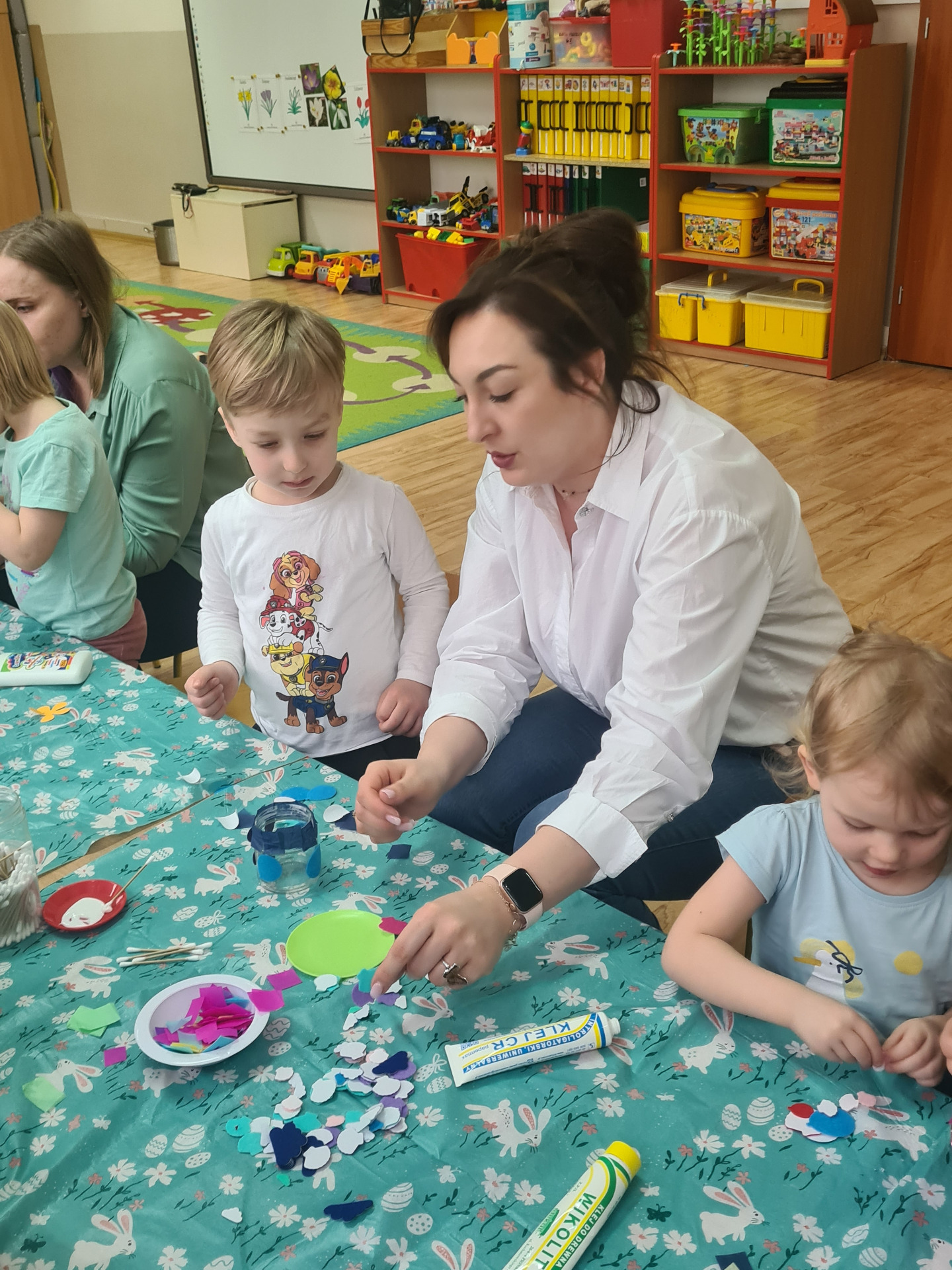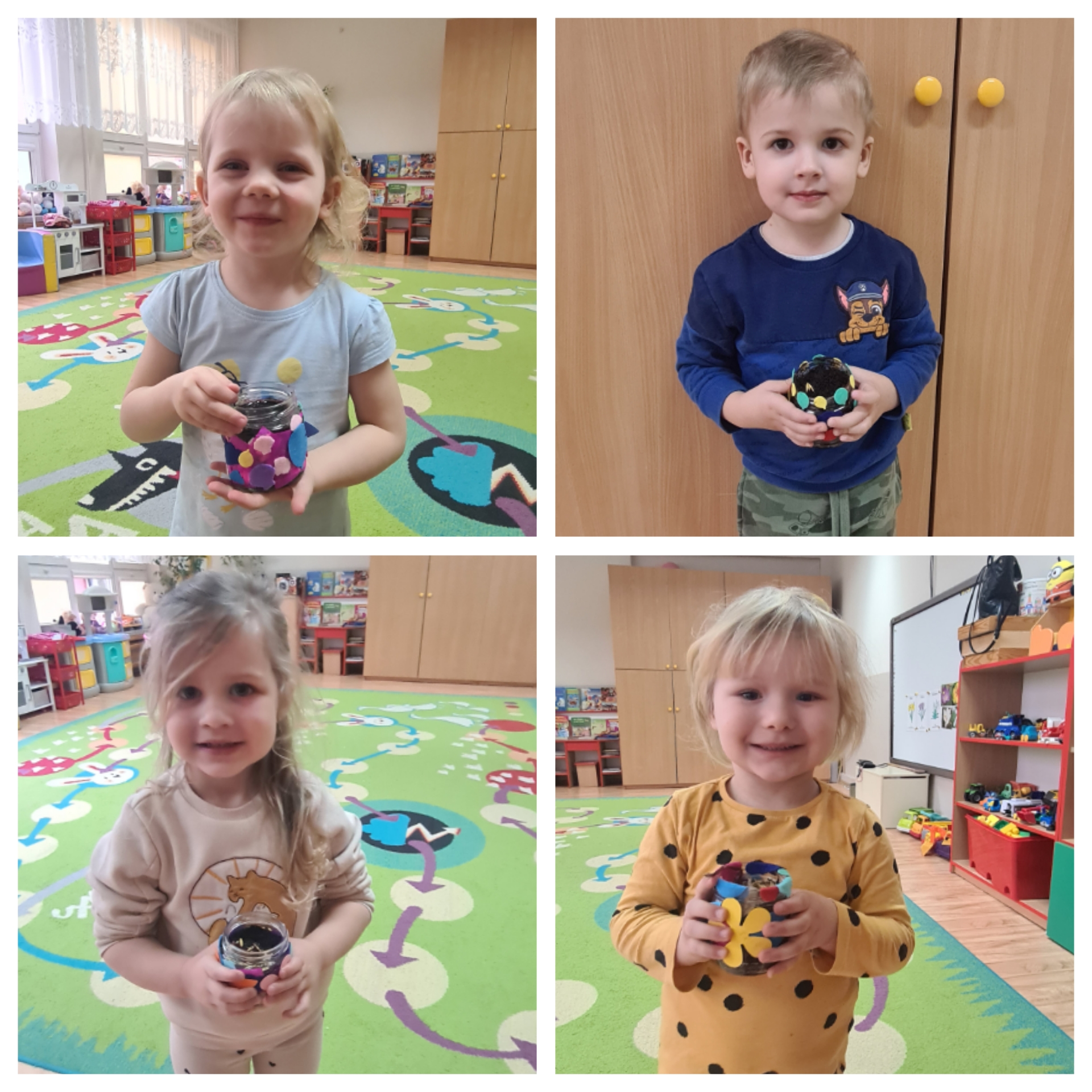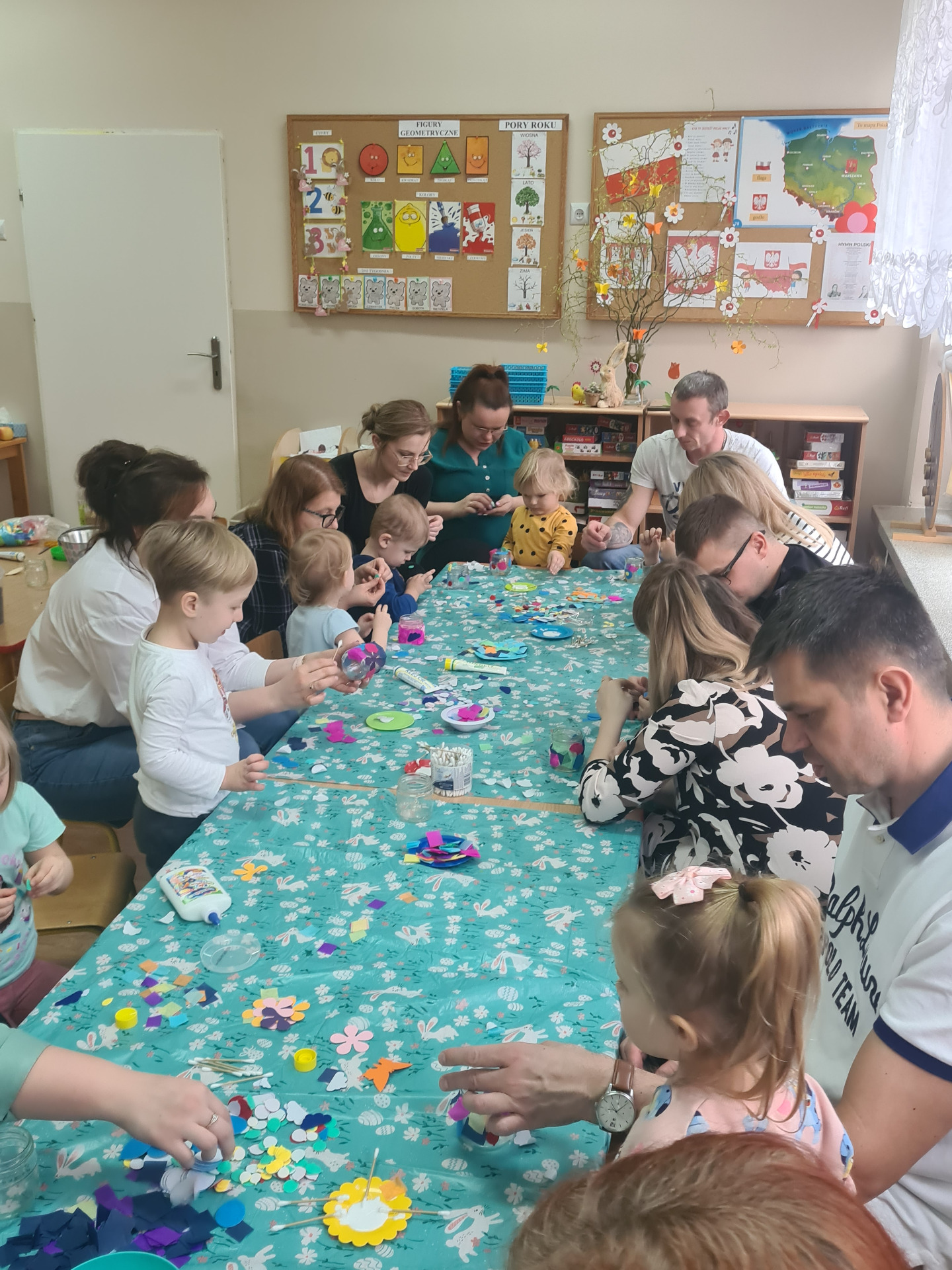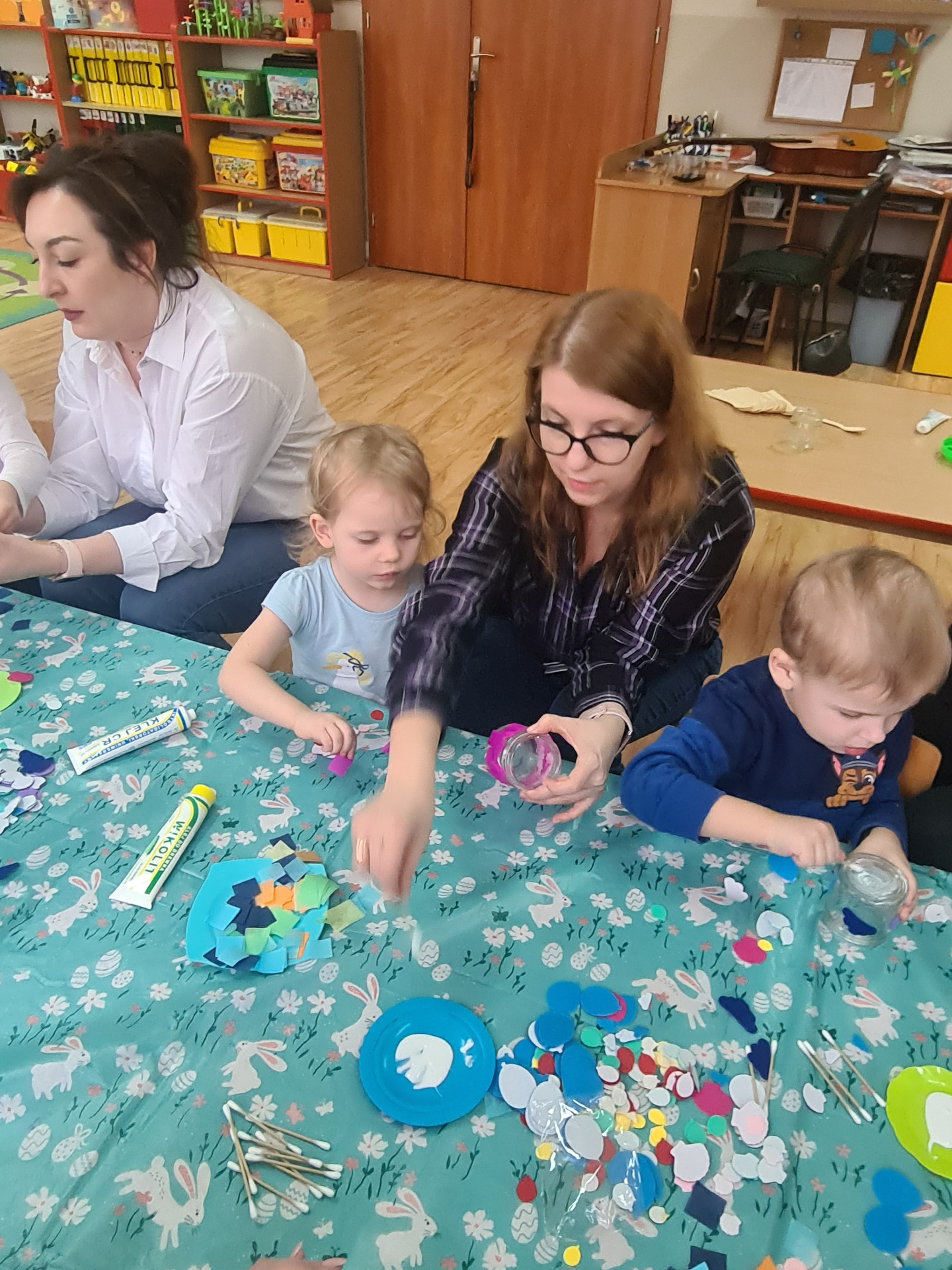 21 marca grupy 3A i 3B spotkały się na warsztatach dla dzieci i Rodziców, by wspólnie świętować nadejście wiosny. Warsztaty rozpoczęły się radosnym powitaniem i wiosennymi zabawami muzyczno-ruchowymi. Następnie rozmawialiśmy o powiedzeniu "W marcu jak w garncu", a dzieci miały jedyną w swoim rodzaju okazję do tego, by niczym marzec- pogodę, zamieszać w garze ilustracje pogodowe przedstawiające słońce, deszcz, śnieg, burzę, wiatr i inne. Dostarczyło to dzieciom ogromnej radości ☺️ Kolejnym punktem było ozdobienie przez dzieci wraz z Rodzicami słoiczków, do których następnie wsypały ziemię, by zasiać owies. Dziękujemy Rodzicom wraz z dziećmi za obecność i mamy nadzieję, że możecie już podziwiać w swoich domach owoc swojej pracy- wiosenny, świąteczny owies :)