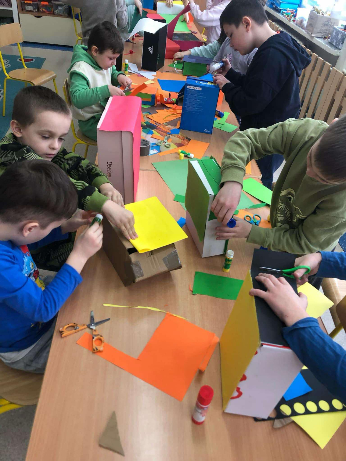 Domy, domki, domeczki…. Ten temat był z nami w minionym tygodniu. W grupie 6b udało się stworzyć osiedle domków, najdziwniejsze domy świata z figur geometrycznych, wymarzone domy, a także makietę osiedla z różnej wielkości kartonów 🏡🏠🏘️🛖Był to tydzień, który rozwijał wyobraźnie oraz kreatywność dzieci.