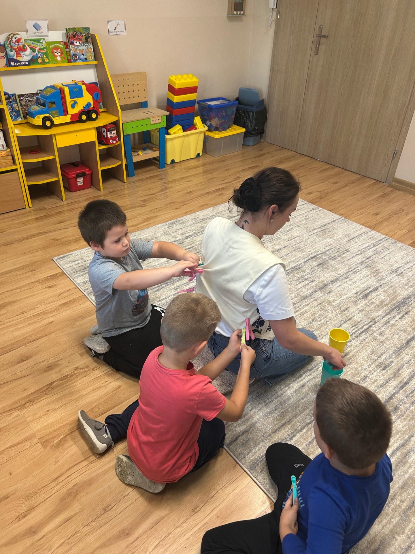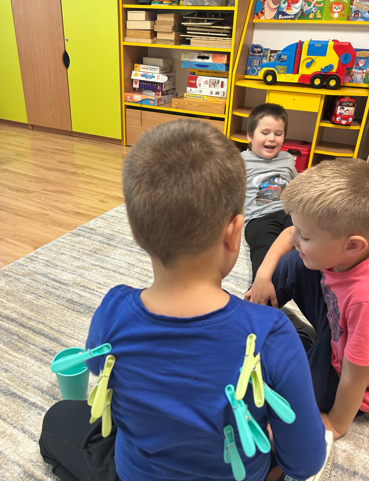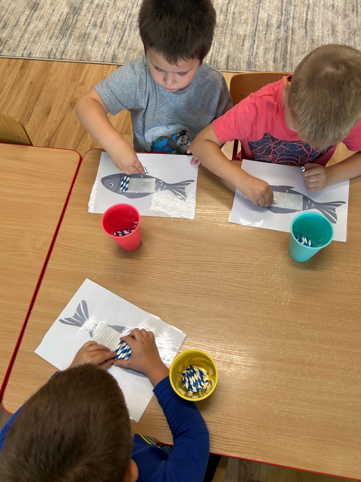 🍂 Ostatni wrześniowy tydzień w grupie S1 obfitował w twórcze i sensoryczne aktywności. To tylko kilka kadrów z naszych działań: 🐟 dzieci tworzyły rybki z kolorowych słomek i patyczków, ćwicząc sprawność manualną i koordynację, 🦔 w zabawie „sensoryczny jeż” zdejmowały klamerki ze swoich pleców, a następnie segregowały je według kolorów – zadanie angażowało wiele zmysłów, rozwijało motorykę, spostrzegawczość, koncentrację i logiczne myślenie, 🍁 podczas spaceru, korzystając z pięknej pogody, dzieci zbierały liście i obserwowały zmieniającą się przyrodę. Z ich pomocą powstały wyjątkowe jesienne jeże – połączenie plastyki i sensoryki, które pobudzało kreatywność, wyobraźnię i wrażliwość na naturę. Było kolorowo, aktywnie i bardzo rozwijająco! 🌟