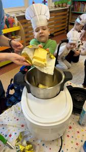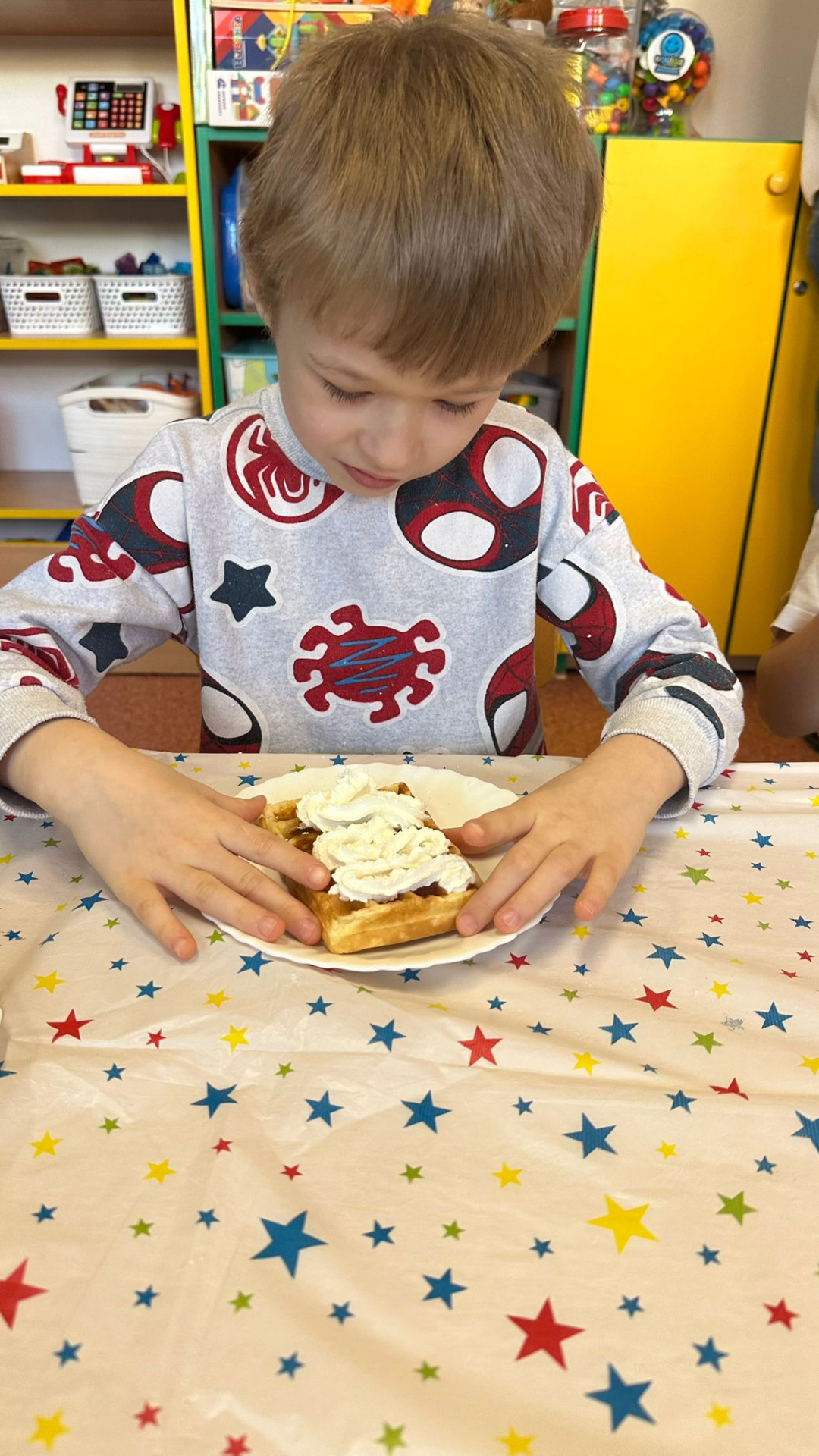 Z okazji Dnia Kucharza dzieci z grup S2 i S4 postanowiły przygotować coś wyjątkowego! Mali kucharze upiekli pyszne, chrupiące gofry, aby w ten sposób podziękować panu Pawłowi oraz całej ekipie kuchennej za ich codzienną pracę, dzięki której w naszym przedszkolu zawsze pachnie smacznie i domowo. 💛 Było dużo radości, śmiechu i słodkich zapachów unoszących się w całej sali! Dziękujemy za Wasze pyszne posiłki i serce, które wkładacie w gotowanie każdego dnia! 👩🍳🧇