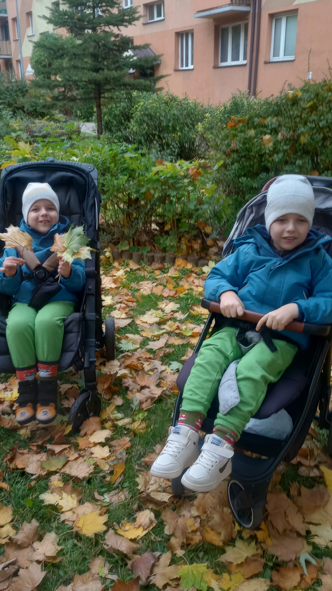 Grupa S4 na jesiennym spacerze 🍁🍂🍄🟫. "Idzie, idzie pani Jesień, barwne liście dla nas niesie żółte, złote i brązowe bardzo, bardzo kolorowe"