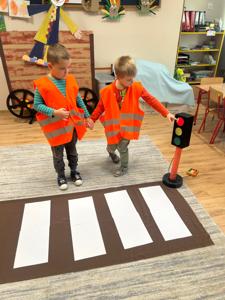 Dzieci z grupy S1 w tym tygodniu zamieniły się w małych ekspertów od ruchu drogowego! 🚗 Podczas zajęć poznawały znaki drogowe, rozmawiały o zasadach bezpiecznego przechodzenia przez ulicę i o tym, dlaczego warto zawsze uważać na drodze. Z ogromnym zaangażowaniem wykonały też swój własny sygnalizator świetlny, dzięki któremu mogły jeszcze lepiej zrozumieć, jak działa ruch uliczny. 🚦 Na zakończenie wyruszyły na spacer w kamizelkach, by poobserwować wszystko w praktyce. 👀 Teraz już świetnie wiedzą, jak bezpiecznie poruszać się po drodze – z głową, ostrożnie i zawsze na zielonym! 💚
