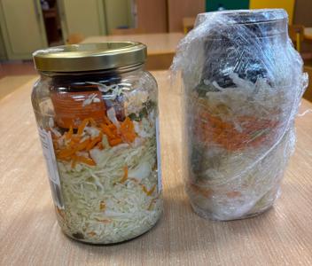 24 października w naszym przedszkolu dzieci z grupy 4A zastanawiały się nad wartością warzyw, a szczególnie skupiły się nad kapustą oraz nad sposobami jej wykorzystania podczas jesiennych przetworów. Zajęcie było podzielone na dwie części. W pierwszej części zajęć przedszkolaki rozmawiały na temat możliwości wykorzystania warzyw w formie przetworów. Następnie dyskutowały o walorach smakowych i zdrowotnych kapusty kiszonej . Dowiedziały się, że ma ona wiele witamin i minerałów, które są niezbędne, by nasz organizm dobrze funkcjonował. W drugiej części zajęć dzieci poszatkowaną kapustę i startą marchew wrzucały do przygotowanych w tym celu słoików. Następnie każdą warstwę posypywały solą. Uczestnicy byli bardzo zaangażowani w proces ugniatania warzywa. Efekt pracy Przedszkolaków został umieszony w kąciku przyrody. Wspólnymi siłami ukisiliśmy kapustę!