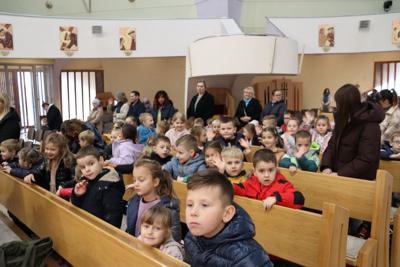 W dniu 27 października w kościele pod wezwaniem Matki Bożej Królowej Świata odbyła się uroczysta Msza Święta z okazji 50-lecia Przedszkola Publicznego Nr 3 z Oddziałami Specjalnymi im J. Porazińskiej w Radomiu. W Eucharystii uczestniczyli wychowankowie przedszkola, nauczyciele, pracownicy oraz zaproszeni goście. Liturgii przewodniczył Biskup diecezji radomskiej Marek Solarczyk, który w homilii podkreślił znaczenie wychowania młodego pokolenia w duchu wartości, dobra i wzajemnego szacunku. Zwrócił uwagę na rolę przedszkola jako miejsca nie tylko nauki i zabawy, ale przede wszystkim budowania wspólnoty opartej na miłości, zaufaniu i trosce o drugiego człowieka. Podczas Mszy Świętej dzieci z przedszkola włączyły się w liturgię poprzez modlitwę wiernych, procesję z darami oraz śpiew, który nadał uroczystości wyjątkowy, radosny charakter. Na zakończenie Eucharystii przedstawiciele społeczności przedszkolnej złożyli podziękowania księdzu biskupowi za wspólną modlitwę oraz okazaną życzliwość i wsparcie. Jubileuszowa Msza Święta była pełna wdzięczności – za minione lata, za trud i serce włożone w wychowanie wielu pokoleń dzieci, a także za wszystkich, którzy przez pół wieku tworzyli historię naszego przedszkola. Wspólna modlitwa była pięknym początkiem dalszych obchodów jubileuszowych
