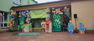 2 czerwca w naszym przedszkolu odbył się Festyn Rodzinny. Otwarcie festynu rozpoczęły występy artystyczne grup 6-latków i grup specjalnych, które przedstawiły tańce i inscenizację wiersza Tuwima pt.: "Lokomotywa" oraz baśń braci Grimm pt.: "Królewna Śnieżka". Po występach na dzieci czekało wiele atrakcji. Można było sobie pomalować buzię, zrobić bajkową fryzurę, zwiedzić radiowóz policyjny. Dla dzieci lubiących aktywnie spędzać czas czekały zabawy muzyczno-ruchowe z udziałem naszych nauczycieli oraz małpi gaj z piłeczkami i dmuchańce. Festyn odwiedził także nasz przedszkolny Krokodylek, który witał się dziećmi i z którym można było zrobić sobie zdjęcie. Wśród atrakcji nie zabrakło baniek mydlanych dużych i małych, które dzieci uwielbiają. Oprócz niespodzianek, dla wszystkich biorących udział w festynie czekały: pajda chleba z domowym smalcem i ogórkiem, kiełbaska z grilla, grochówka, cukierenka oraz kawa i herbata. Mimo deszczowej pogody, wszyscy świetnie się bawili, radośni i uśmiechnięci.